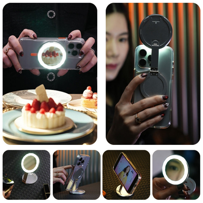 Dette magnetiske sminkespeilstativet kombinerer sminkespeil, lys, magnetisk mobilholder og nattlys i én praktisk enhet som oppfyller alle dine behov! Enten det gjelder sminke, selfies, direktesendinger eller nattbruk - det gir alltid perfekt lys og behagelig støtte.💡