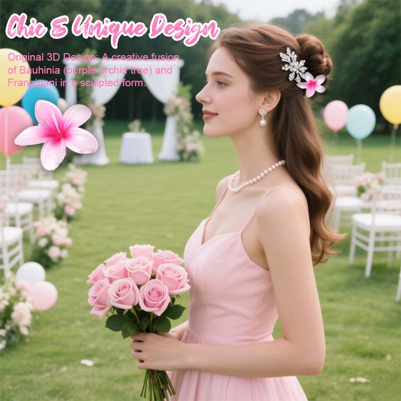 Original 3D-design: En kreativ blanding av Bauhinia (lilla orkide) og Frangipani i en skulpturell form. Hvert kronblad er fint lagdelt for å skape en realistisk, blomstrende effekt.