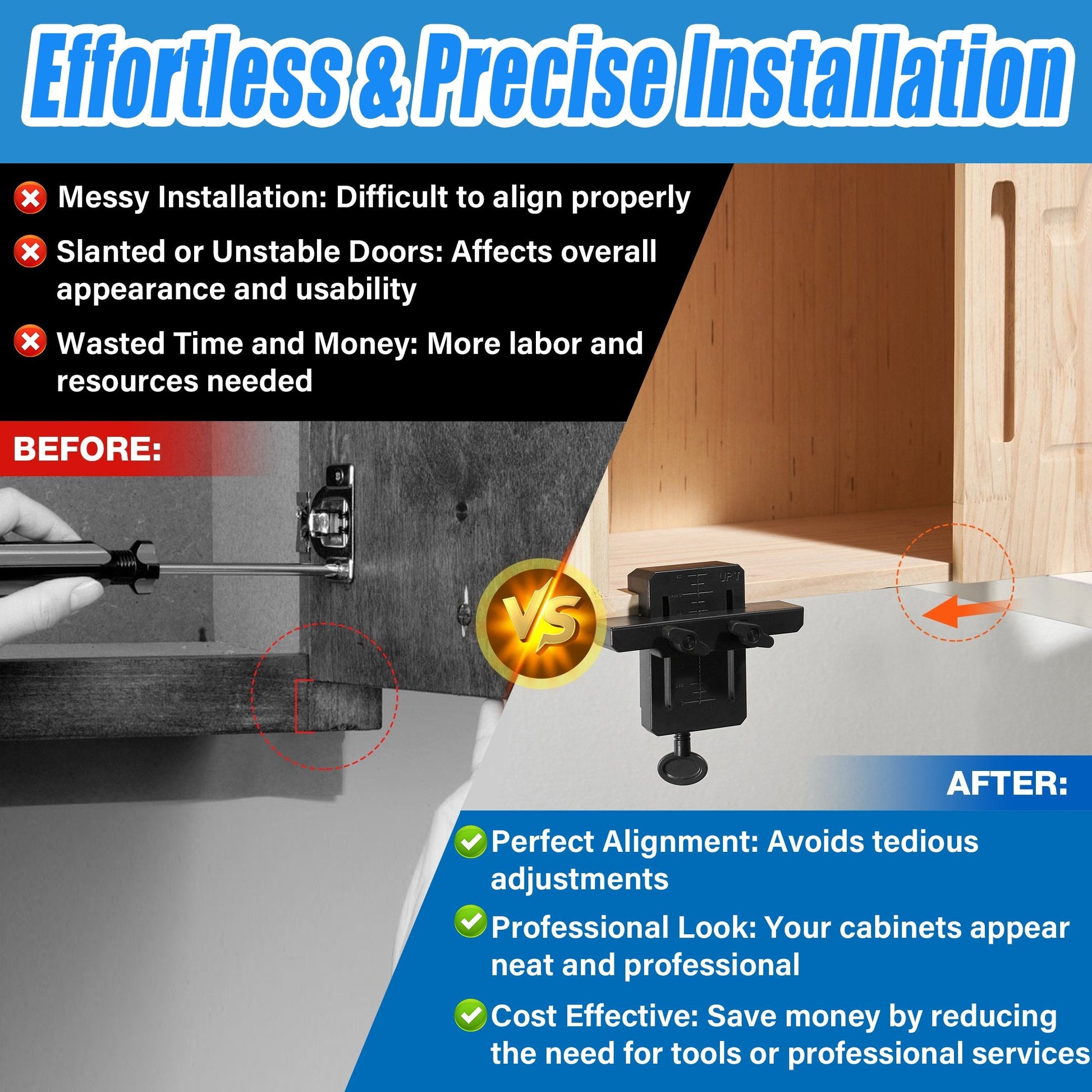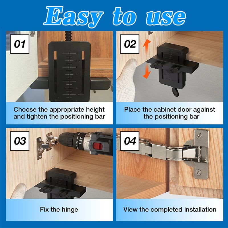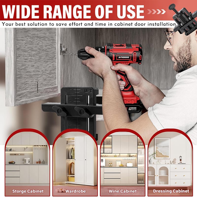 🛠️ Nøyaktig posisjonering: Måler og markerer nøyaktig de perfekte stedene for å bore hull, og sikrer konsistente og profesjonelle resultater hver gang. Lar deg raskt montere skapdører uten hjelp fra andre