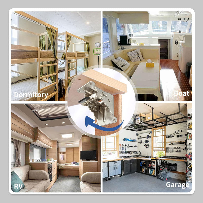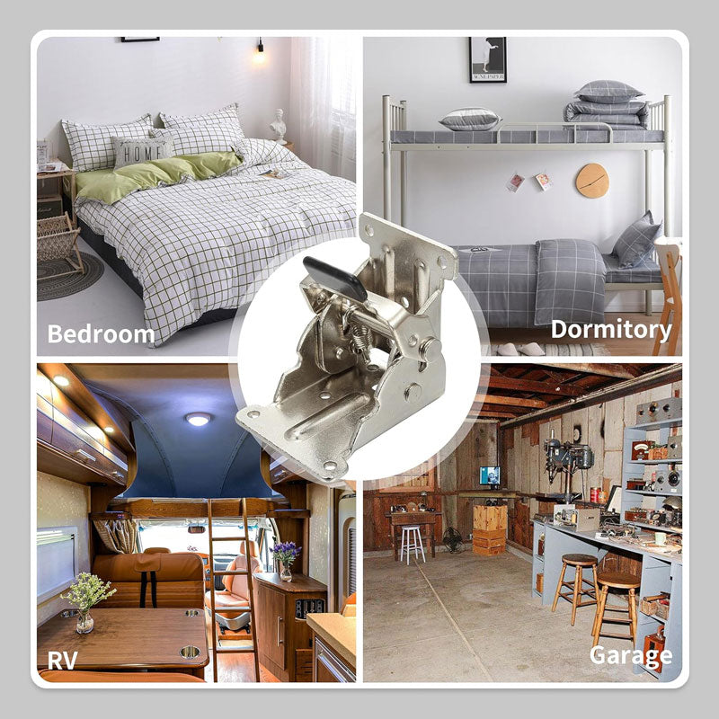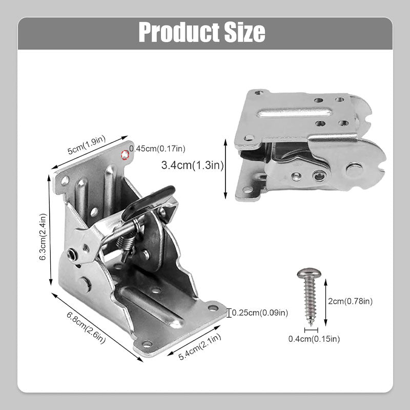 Selvlåsende funksjon: For å øke sikkerheten har disse brakettene en fjæraktivert selvlåsende funksjon som kan låses fast i åpen stilling. Når du ikke bruker et skrivebord eller en arbeidsbenk, klikker du bare på låsen og bretter den ned for å få mer plass.