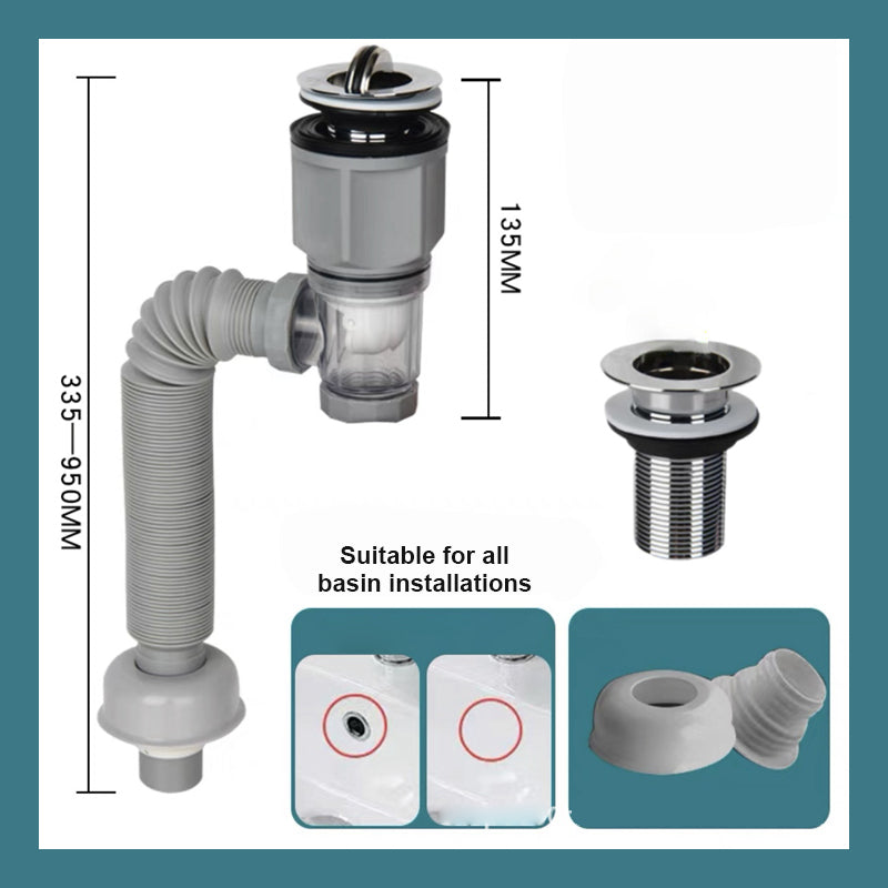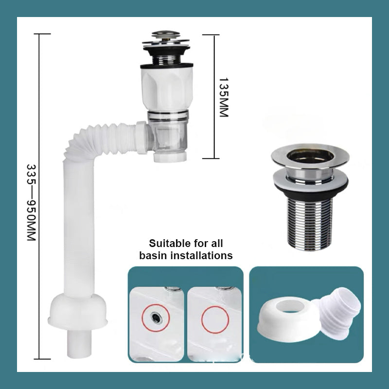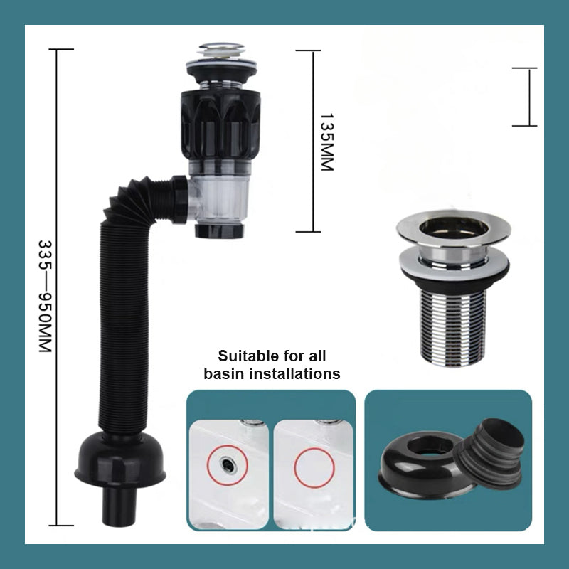 Bruk vårt universelle "Teleskopiske avløpsrør mot lukt" for å effektivt forhindre lukt, og det er enkelt å vedlikeholde og rengjøre.