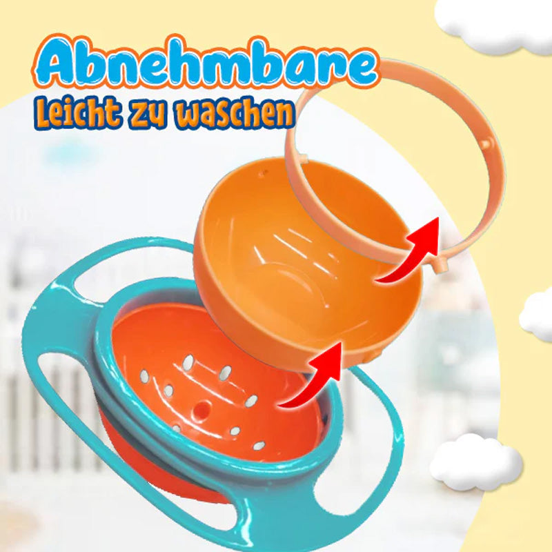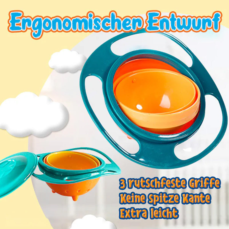 Dette morsomme babysetet har intelligent 540° gyroskoprotasjon som holder seg perfekt oppreist selv når den holdes i enhver posisjon. Dette forhindrer at innholdet søles eller flyr ut uansett hvordan ditt aktive barn vrir, vipper, virvler, slipper eller roterer bollen. Den perfekte hjelperen for foreldre for å oppmuntre barn til å spise og ha det gøy alene uten behov for konstant tilsyn. I tillegg er denne snurrebollen designet med den fargerike favorittformen til en UFO som hvert barn garantert vil bli forelsket i. Så de små kan begynne å like hvert måltid og med glede spise det du serverer dem.