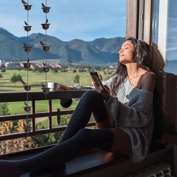 Tilfør sjarm, lyd og bevegelse til hagen eller terrassen din med denne dekorative regnkjeden med åtte elegant designede fuglebad. Enten det regner eller er solskinn, tilbyr dette møbelet en unik blanding av praktisk regnvannshåndtering og beroligende estetikk som vil forbedre ethvert uterom.
