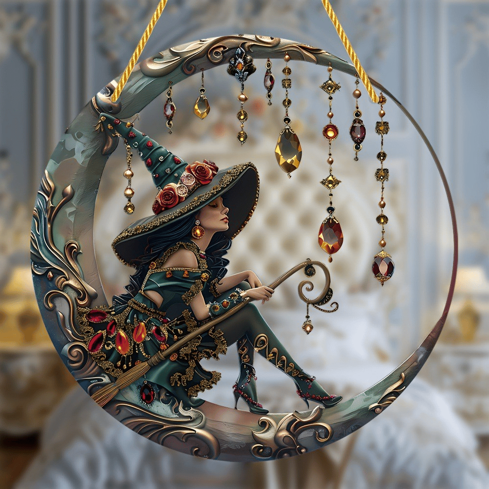 🧙♀️ Vår fantastiske hekse-vindusoppheng er det perfekte tilskuddet til innredningen din! Denne vakkert utformede julekulen har et fortryllende heksedesign utsmykket med intrikate detaljer og glitrende edelstener.