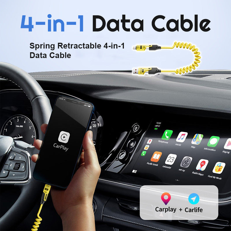 🔌 Uttrekkbar 4-i-1-datakabel med fjær - effektiv lading, praktisk bruk 🔌