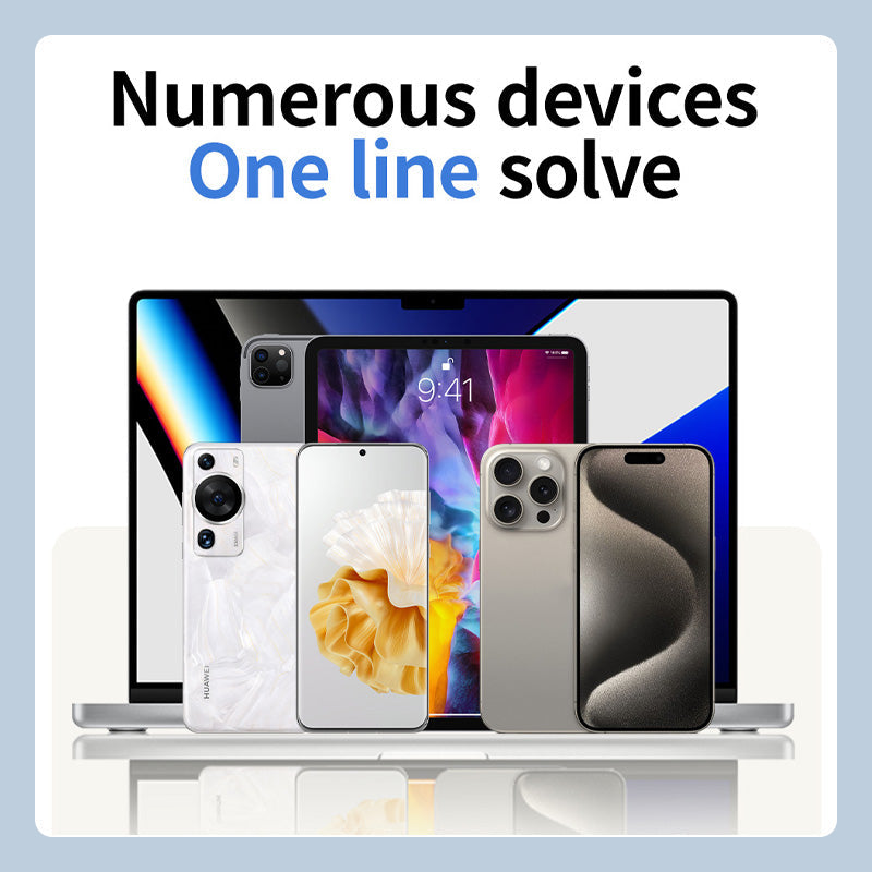 🔹 Fire-i-ett-funksjon: støtter USB til Type-C, USB til Lightning, Type-C til Type-C, Type-C til Lightning.