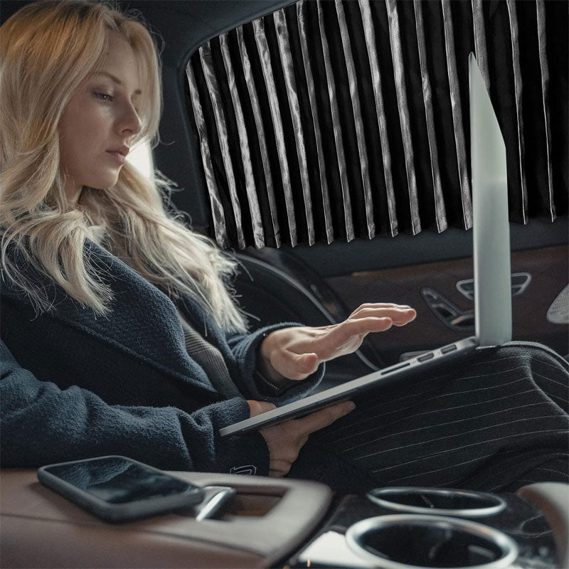 🌞 Solbeskyttelse og varmeisolasjon: Blokkerer direkte sollys, forhindrer effektivt ultrafiolette stråler fra å komme inn i bilen, reduserer temperaturen inne i bilen og gir deg et komfortabelt kjøremiljø.