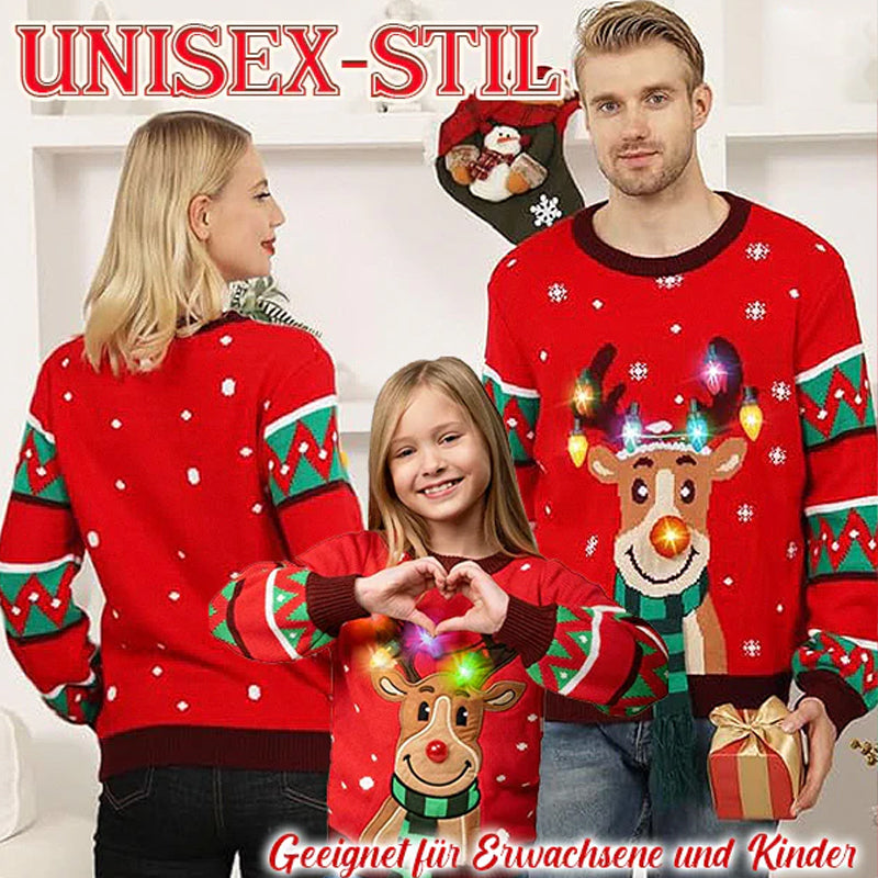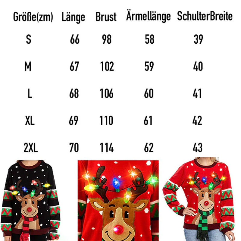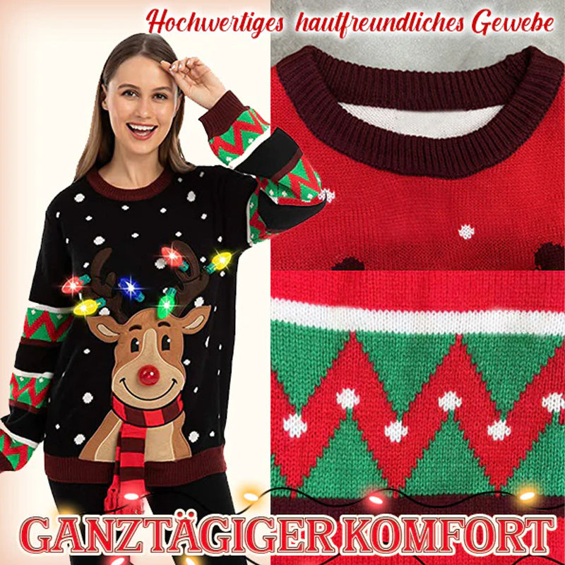Omfavn julemåneden med festlig sjarm og komfort med denne glitrende julereinsdyr-genseren med LED-lys!