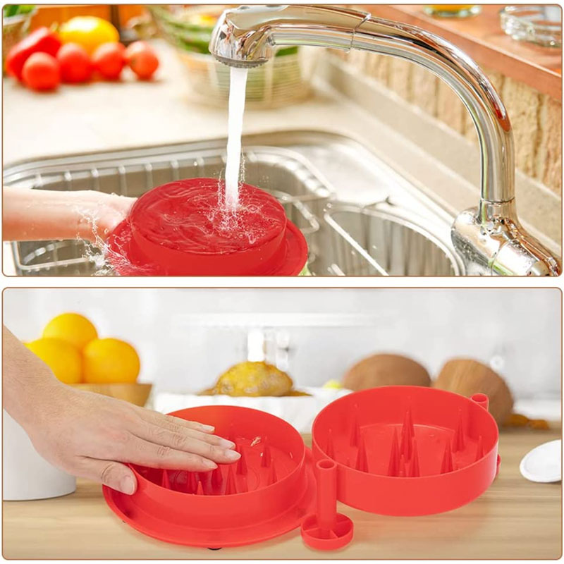 - 🥰SLIK BRUKER DU DEN - Denne praktiske kjøtthakkeren er et lett og allsidig kjøkkenverktøy som gjør det enkelt å rive gjennom matvarer. Alt du trenger å gjøre er å legge kjøttet inn i kammeret, sette ned lokket og utføre flere halve rotasjoner ved hjelp av de integrerte håndtakene