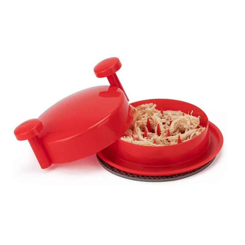 Meat Shredder strimler raskt og enkelt kokt kjøtt, kylling, storfekjøtt, svinekjøtt og fisk på sekunder. Med bare noen få halve omdreininger holder den unike designen sikkert fast og strimler kokt kjøtt. Tilbered restaurantfavoritter hjemme, som taco, enchiladas, pulled pork, buffalo kyllingsalat, tunfisksalat og mye mer.