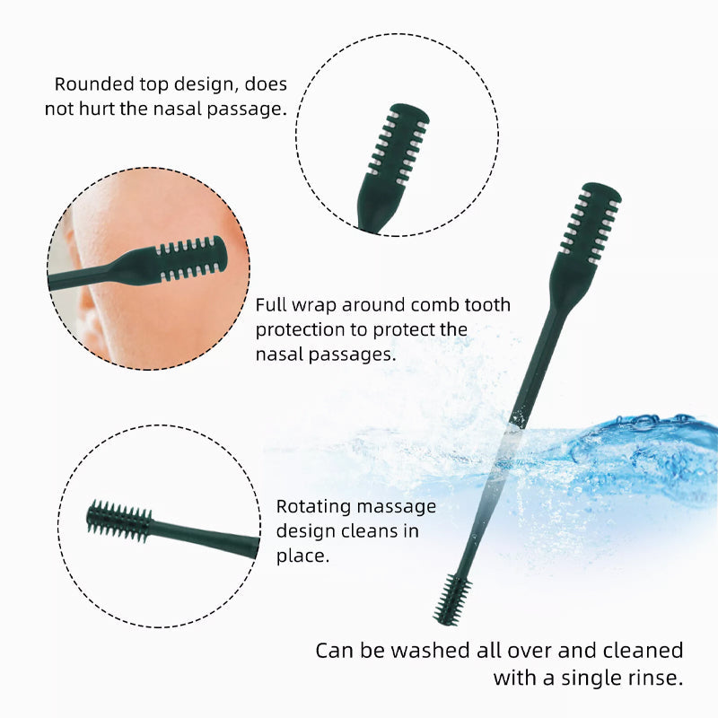 Det myke rensehodet er designet for å ikke skade nesekanalen, samtidig som det fjerner løse hår og holder nesen ren.