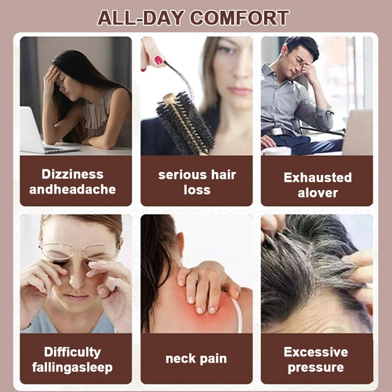 · Seks-punkts klør for å stimulere trykkpunkter i hodebunnen og nakken