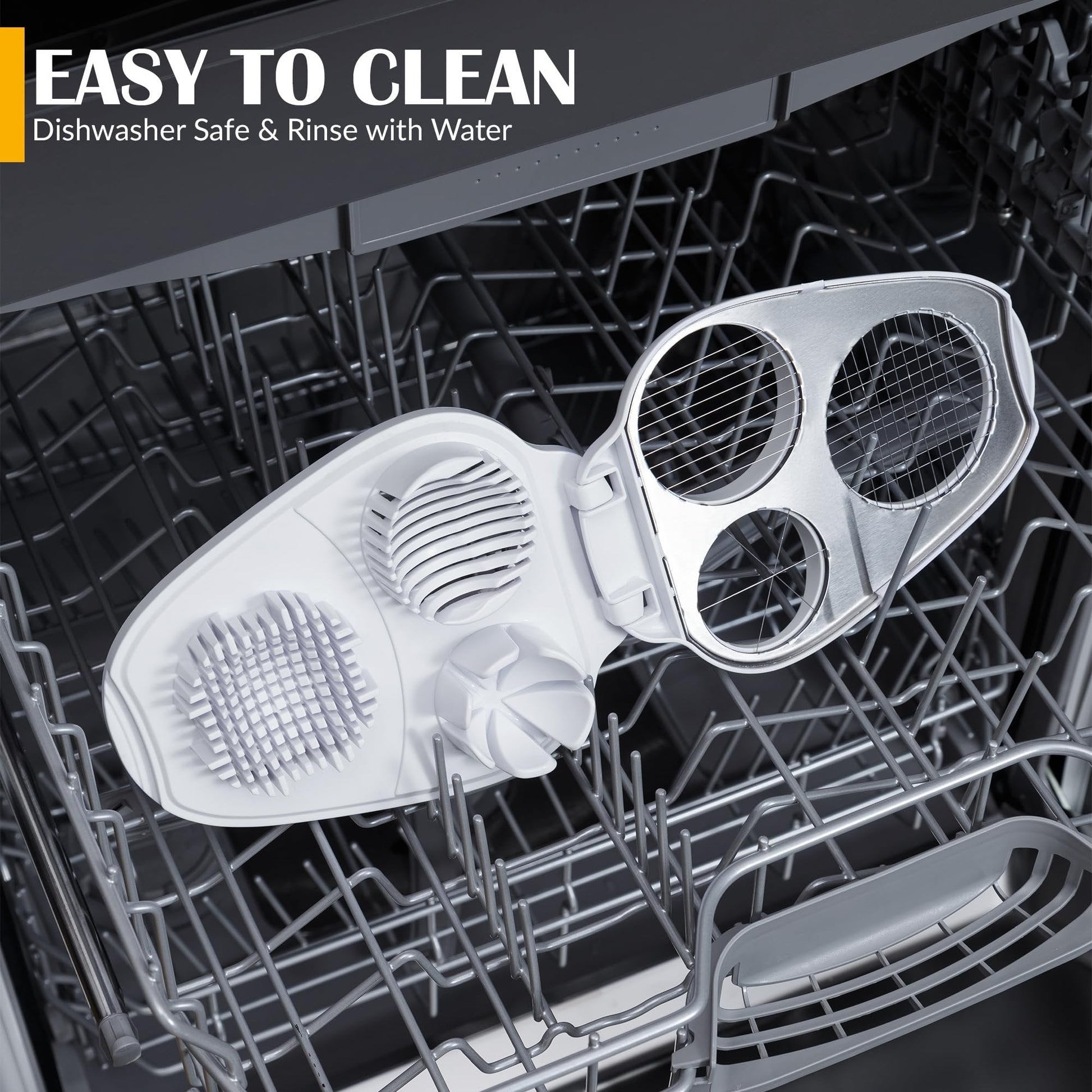 Enkel å bruke Stell: Det er enkelt å bruke eggskjæringsverktøyet; legg det skrellede egget på overflaten, lukk det, og - alt ferdig; å vaske eggskjæreren for hardkokte egg er også enkelt, du kan skylle den med vann eller sette den i oppvaskmaskinen.