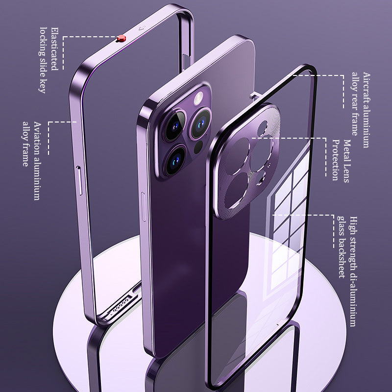 Forsterket ramme i aluminium: Dekselet har en ramme av legering med elastiske trykknapper for sikker låsing. Det gir robust beskyttelse mot fall, slik at du kan leve uredd med enheten din. 🚀📱