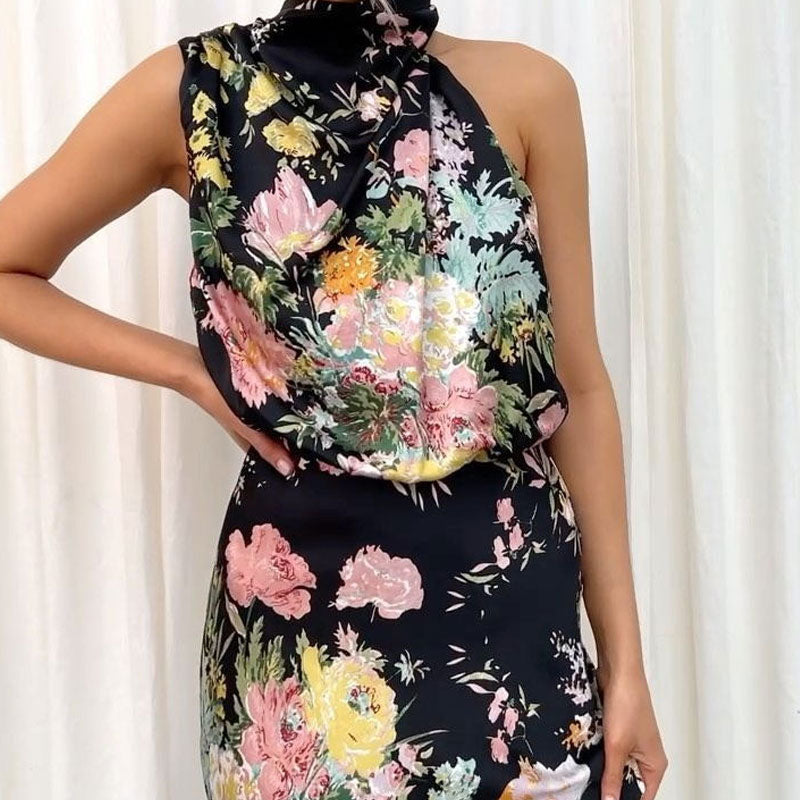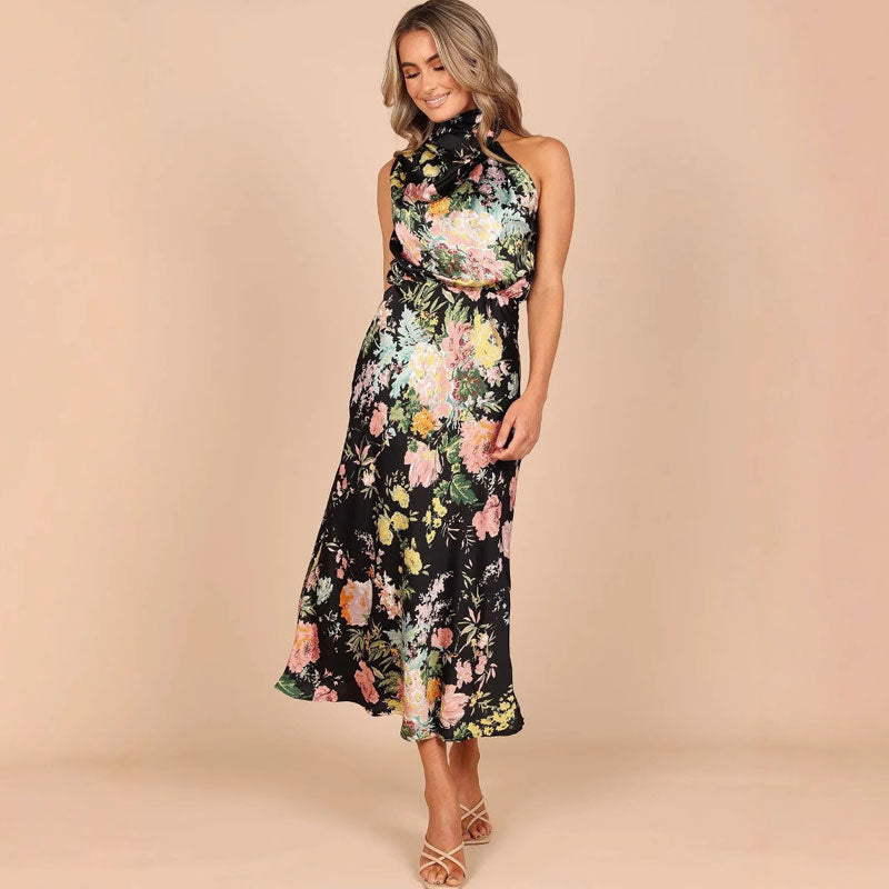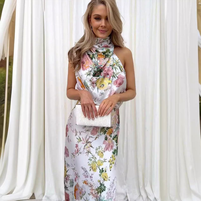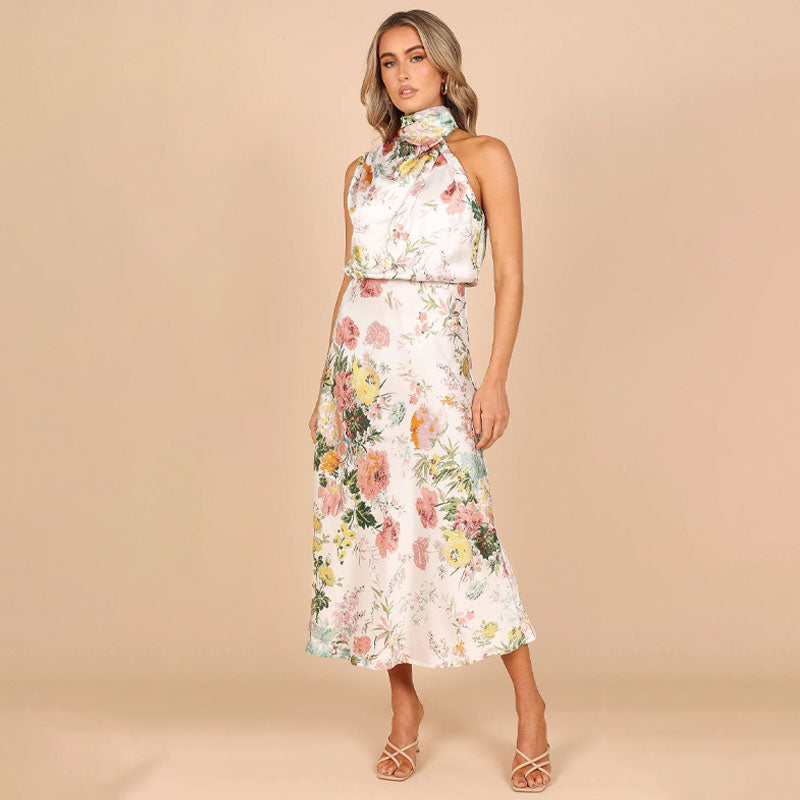 - 1 x Ermeløs Kjole Med Trykk Og Halterneck