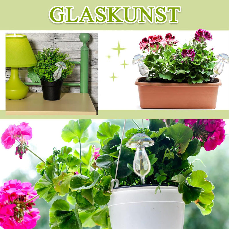 Å vanne blomster kan også være romantisk! Dette fargerike automatiske vanningssystemet i glass lar ikke bare vannet trenge langsomt ned i blomstene, men bryter også drømmelignende farger i sollyset. Fugler, sopp, kuler, roser og andre former, hver og en som et kunstverk i glass, gir plantehjørnet ditt vitalitet og en eventyrlig stil.