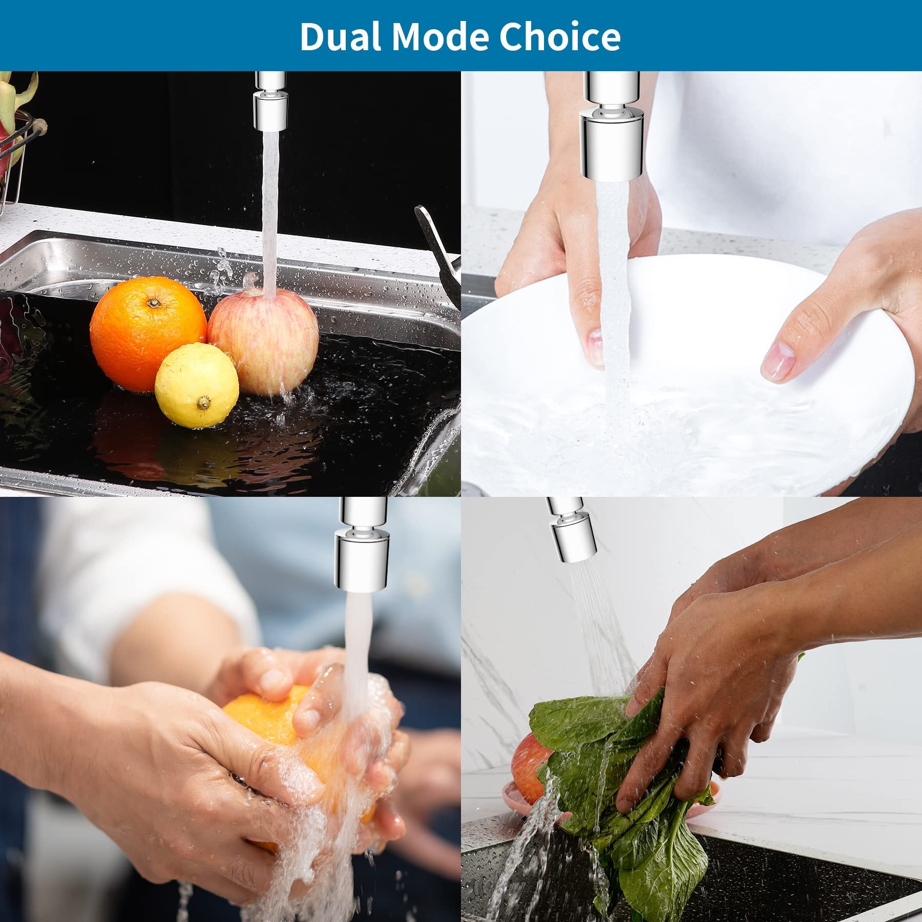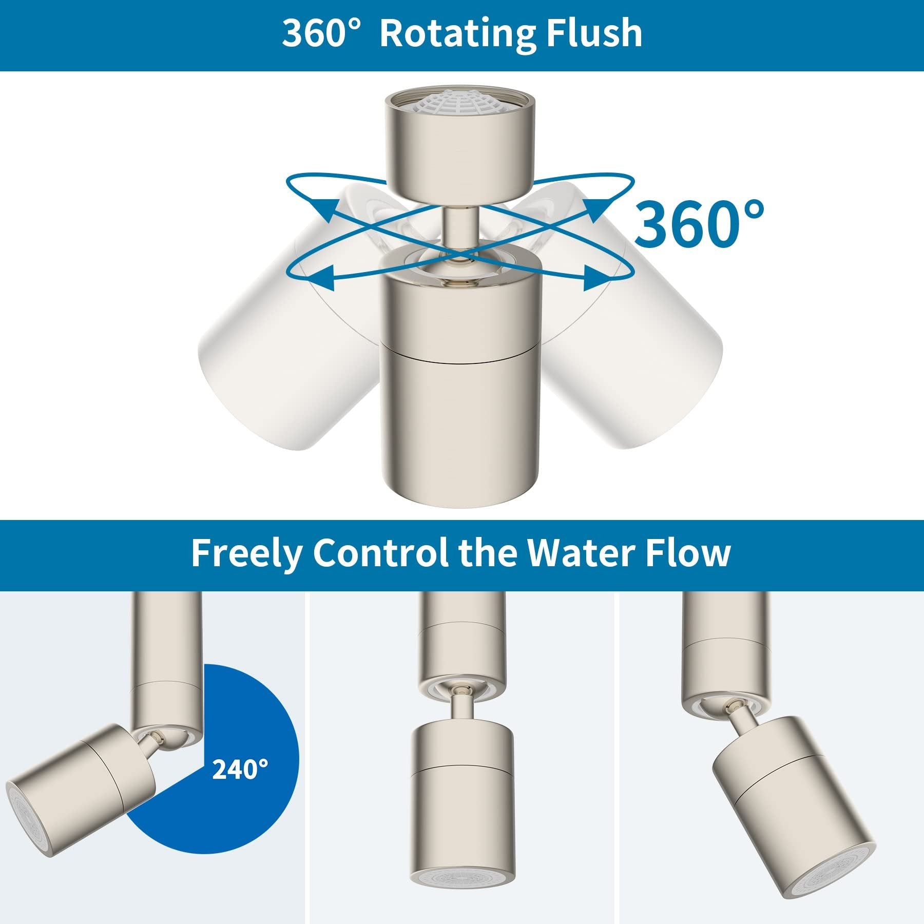 2-stråles munnstykke med to funksjoner: Luftelufteren til kjøkkenkranen er 100 % lekkasjesikker, og den roterende basen kan konvertere den milde boblestrømmen til en kraftig stråle med 360-graders rotasjon.