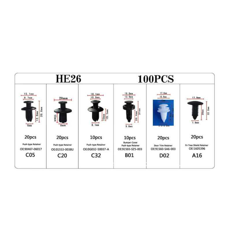 Widely Application-- Widely used for door trim, radiator shield yoke, fender, bumper, side skirt, grille, engine cover, and splash shield retainers replacement for Volvo, BMW, GMC, Ford, Toyota, Honda, Nissan, Mazda, Chrysler, Volkswagen, Mercedes-Benz, and Audi, etc. It always covers some applications include telecom equipment, motor vehicles, domestic appliances, furniture, and electrical equipment.