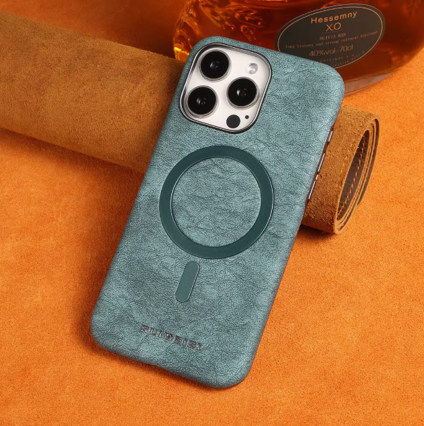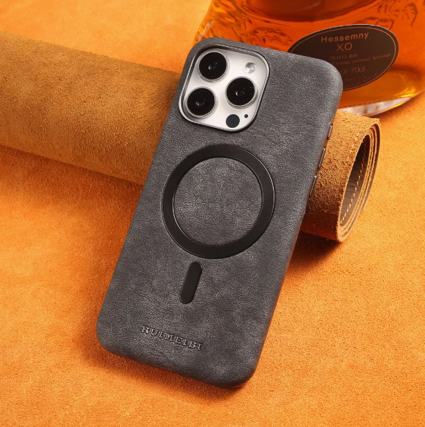 Den er laget av luksuriøst ekte skinn som gir en glatt tekstur og et raffinert utseende. Det er slitesterkt og stilig, og beskytter telefonen din på en enkel måte.
