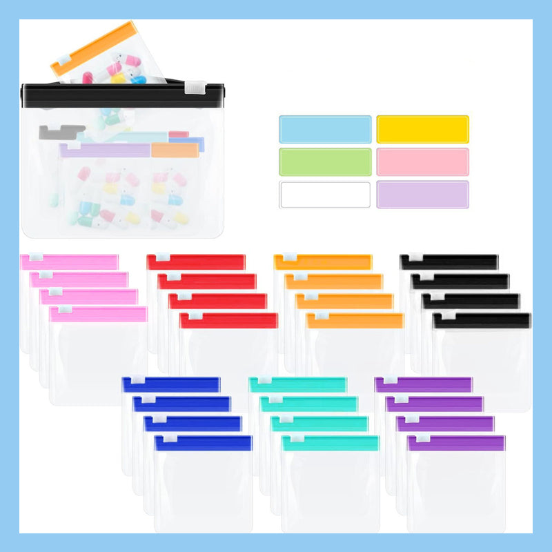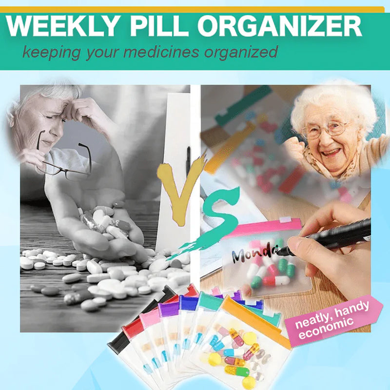 Et søtt miniposesett som er perfekt for å pakke inn flere medisiner av forskjellige doser og typer. Gjør at du enkelt kan ta med deg vitaminene dine for å holde dem lett tilgjengelige og klare til enhver tid. Dessuten lar den deg organisere medisinene dine på en ryddig måte og trygt lagre dem på ett sted uten behov for store pillebokser og beholdere under turer. Ingen grunn til bekymring siden denne pilleposen kommer i en gjennomsiktig design slik at du tydelig kan se innholdet. Tilgjengelig i et sett med 7 deler med forskjellige farger som er ideelt for en ukentlig pillemedisin. Du kan til og med sette etiketter på dem for enkelt å identifisere piller og unngå forvirring og ta feil.