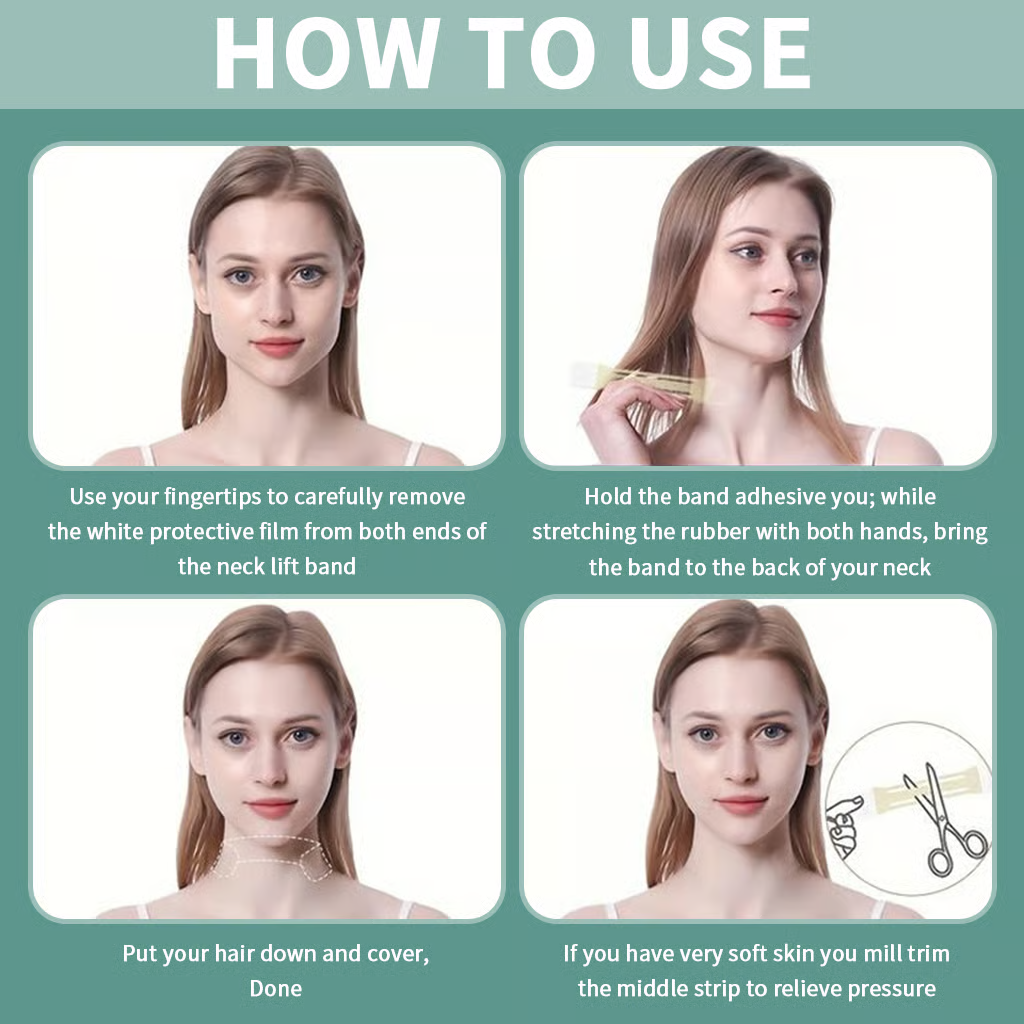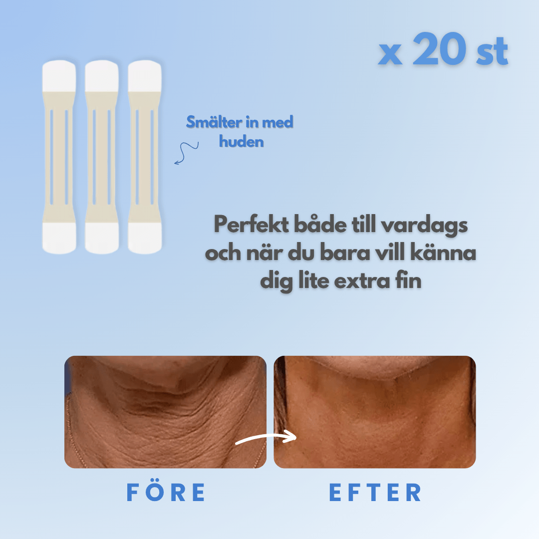 Glowina er din diskrete hjelpende hånd. En tynn, hudfarget tape som forsiktig løfter og glatter ut huden på halsen.