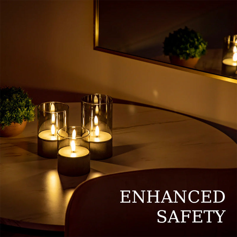 Eliminer brannrisiko uten å gå på kompromiss med stilen. Disse LED-lysene etterligner gløden fra ekte flammer samtidig som de er trygge, noe som gjør dem til et ideelt valg for husholdninger med barn, kjæledyr eller områder med mye trafikk.