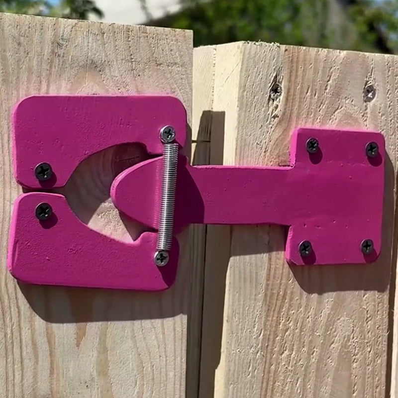 UNIKT OG FANTASTISK DESIGN - Låsen kjennetegnes av en spesialdesignet, kantete form og en knallrosa farge som gjør at den skiller seg ut fra konvensjonelle portlåser. Den dristige fargen og den moderne silhuetten gir den et stilig preg, samtidig som den beholder sin funksjonalitet for tregjerder.