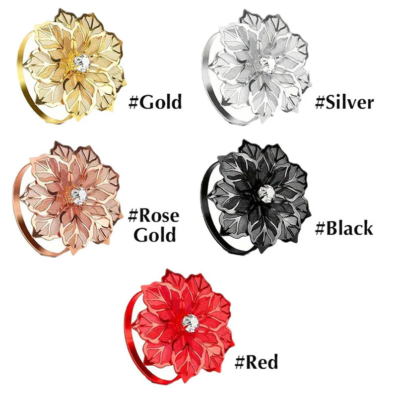 Denne hendige serviettringen er nydelig konstruert med intrikate blomsterform og utsøkt nettdesign som garantert vil tjene som øyegodteri til alle bordsettinger. Kronbladene kan justeres fritt for å passe ditt foretrukne blomsterutseende enten du vil ha det mer kompakt eller ser mer blomstrende ut. Videre følger det også med fantastiske diamantperler for den ekstra glitrende touchen. Det perfekte bordtilbehøret som kan skryte av eleganse og luksus som kan sofistikere alle måltider. Ingen grunn til bekymring, siden denne serviettringen kan pares fantastisk på alle linservietter som vanlige hvite servietter, mønstrede servietter, pastellservietter og så videre. Tilgjengelig i 5 stilige fargevalg, inkludert gull, sølv, rosa gull, svart og rødt.
