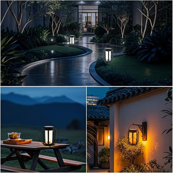 【Oppgradert solcellepanel og lang driftstid】Solcellepanelet på vanntette uteplasslykter er laget av større og mer effektivt monokrystallinsk silisium, energikonverteringshastigheten er opptil 25 %, og ladeeffektiviteten er høyere enn andre utendørs solcellelykter. Solcellelykter utendørs utstyrt med 600 mAh høykapasitetsbatteri absorberer og lagrer mer sollys som elektrisitet. Solcellelykter utendørs vanntette hengende kan fungere i opptil 8–12 timer etter full lading.