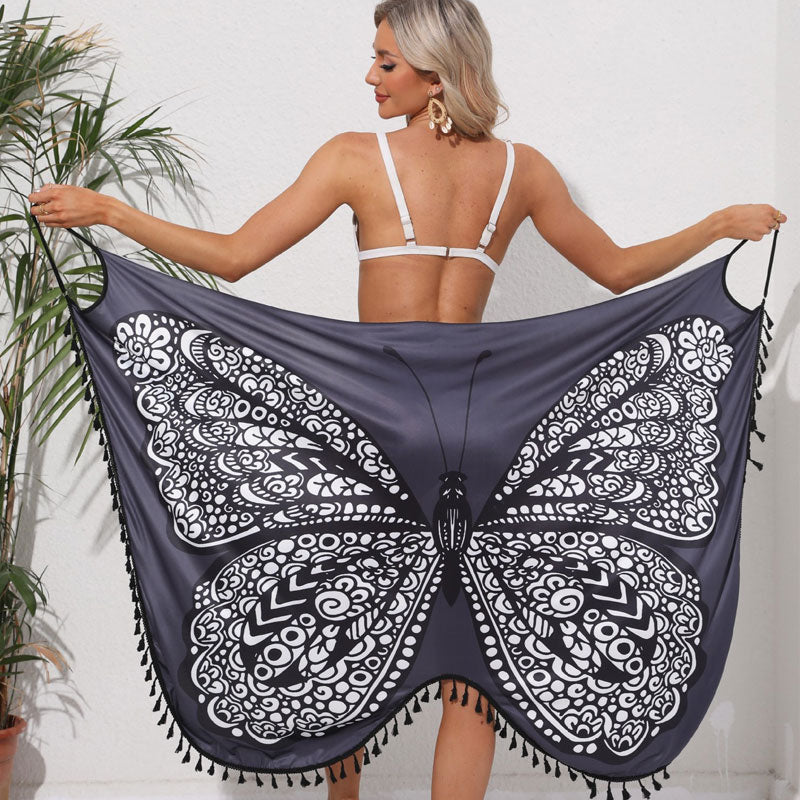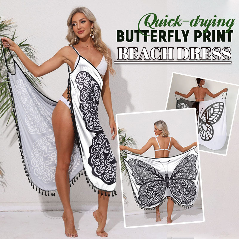 1 x Hurtigtørkende strandkjole med sommerfugltrykk