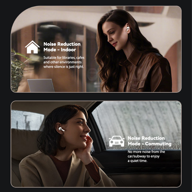 - ENC Støyreduksjon:Aktiv støyreduksjonsteknologi bidrar til å redusere støy fra omgivelsene og gir deg en oppslukende lytteopplevelse. Enten du befinner deg i støyende omgivelser eller på et stille sted, kan du nyte lydkvaliteten uten distraksjoner.