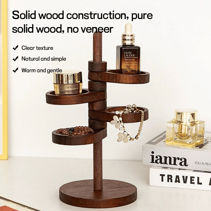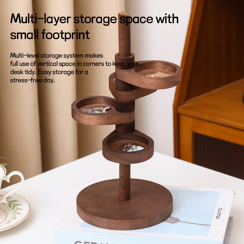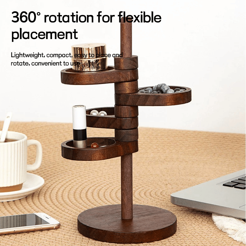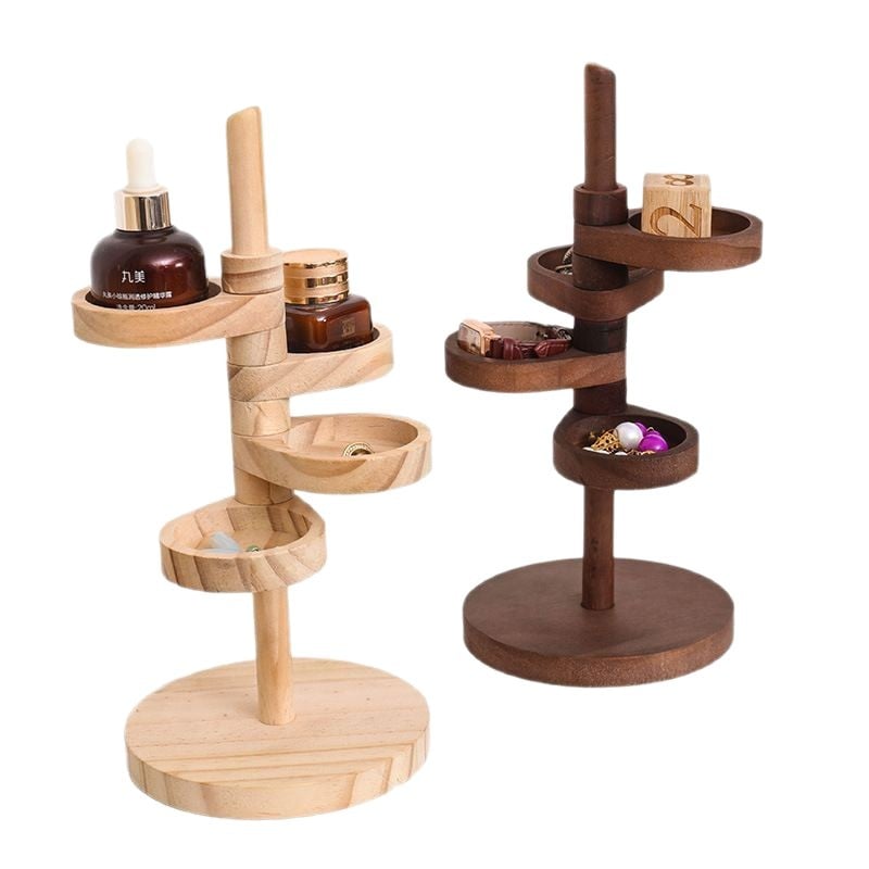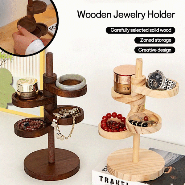 Denne roterende oppbevaringsboksen i tre med flere lag er flott for oppbevaring og organisering av ringer, halskjeder, armbånd, øredobber, smykker, anheng, dekorasjoner, sminke, blomsterpotte osv.