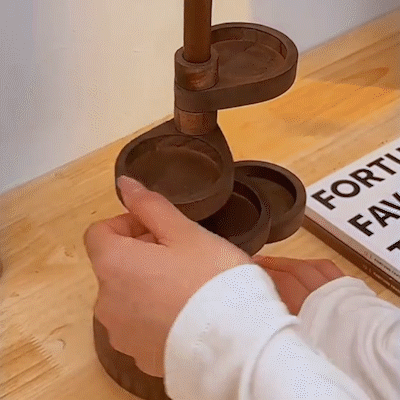 Roterende design bidrar til å opprettholde en attraktiv utstilling samtidig som alt holdes ryddig og lett tilgjengelig. Det unike designet gir et elegant preg til hjemmeinnredningen din.