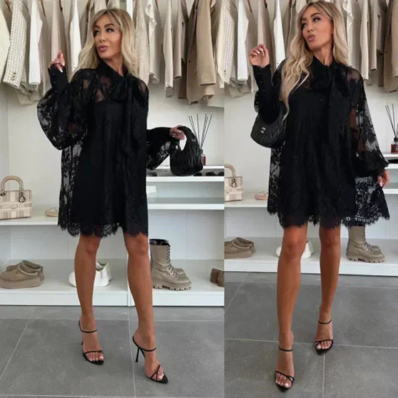 {Gratis Frakt}🌸Vårtilbud🌸 Minikjole i blonder med sløyfe i halsen