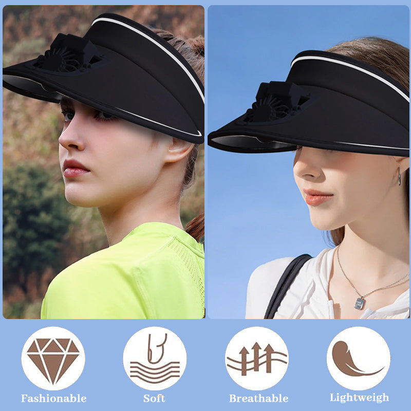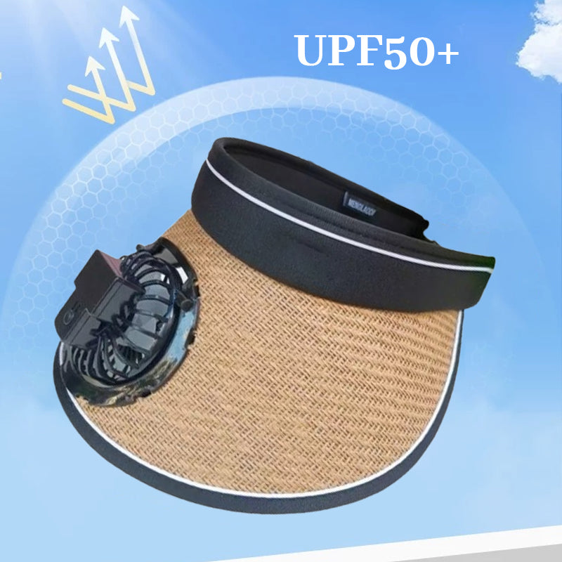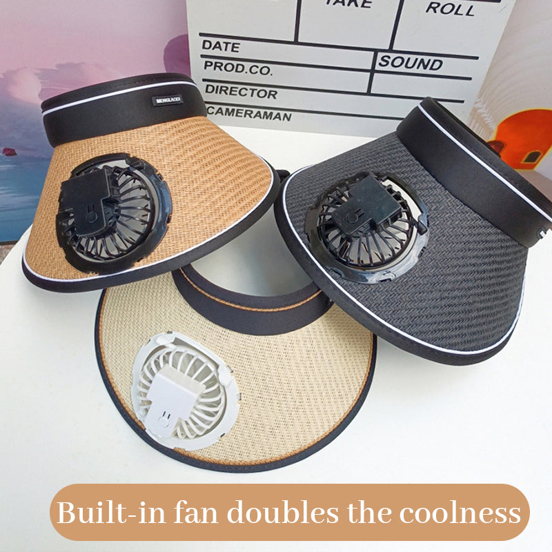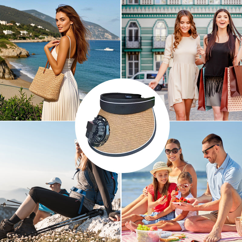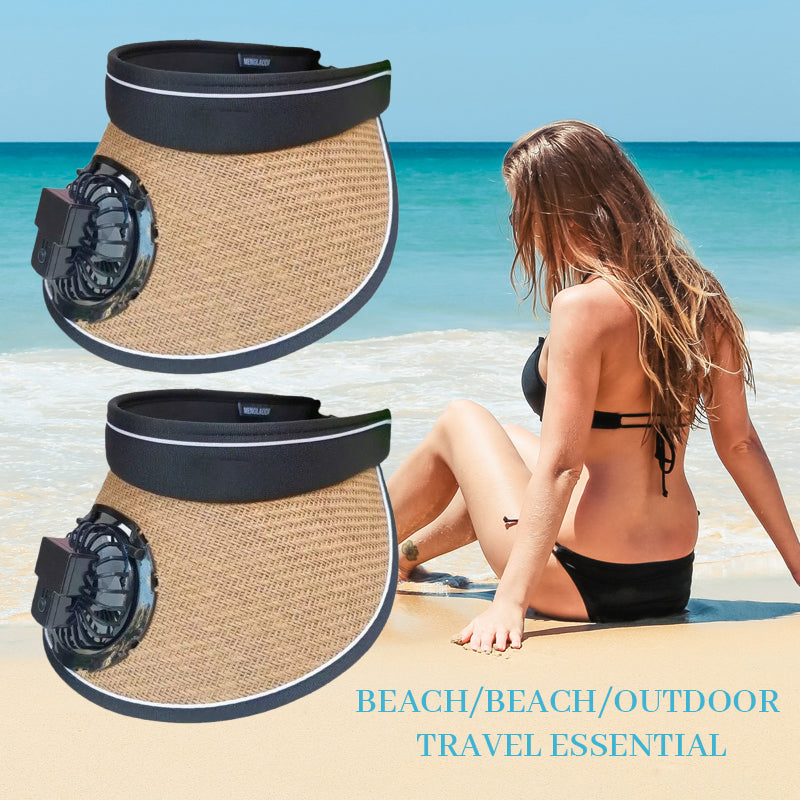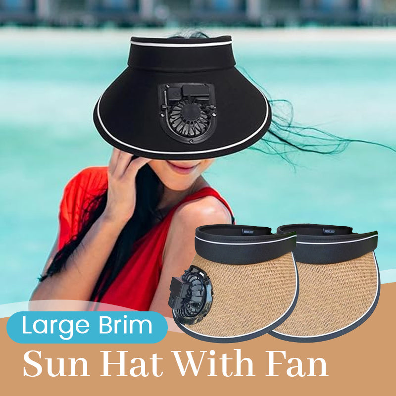 🌞 Solhatt med stor skygge | Innebygd vifte, solskjerm og kjølig!