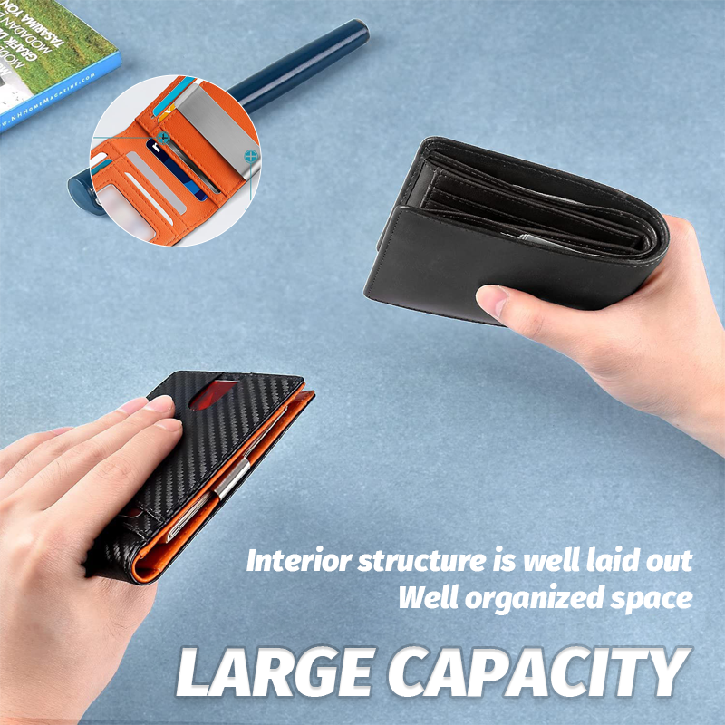 Den stilige lommeboken har flere kortplasser og et eget rom på overflaten, slik at du alltid har de mest brukte kortene for hånden.
