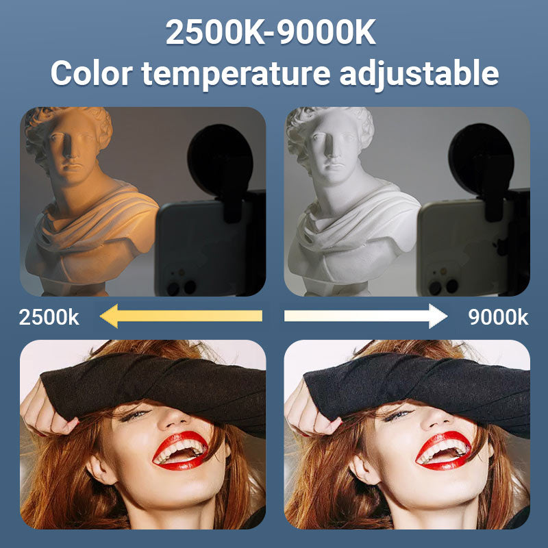 JUSTERBAR LYSSTYRKE OG FARGETEMPERATUR - Magnetic Ring Phone Fill Light tilbyr allsidige belysningsalternativer med justerbar lysstyrke og fargetemperatur. Denne funksjonen gjør det mulig for brukerne å tilpasse lyset til sine spesifikke behov, enten det gjelder sminke, direktesending eller den perfekte selfien.