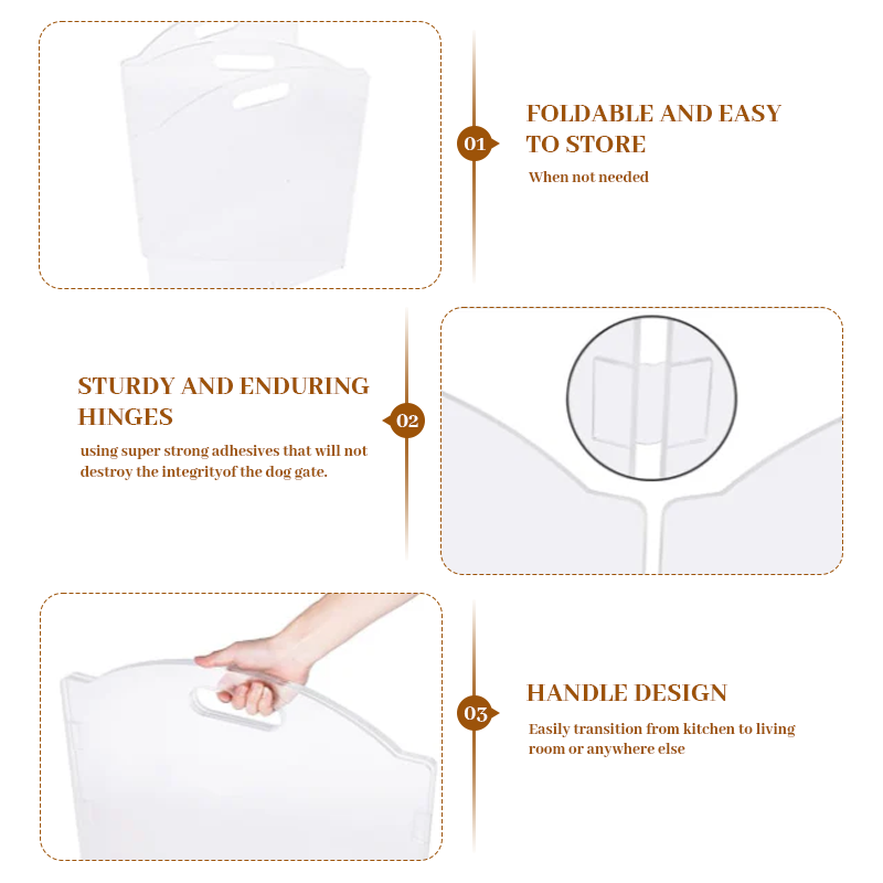Hold kjæledyrene dine trygge og hjemmet ditt stilig med vår innovative, klare akrylgitter for kjæledyr! I motsetning til tradisjonelle metall- eller tregrinder, gir denne 3-panels sammenleggbare designen full sikt samtidig som den skaper en sikker barriere for døråpninger, trapper og ganger. Perfekt for dyreeiere som ønsker funksjonalitet uten å gå på kompromiss med estetikken!