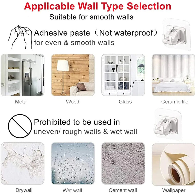 - Sterk selvklebende brakett - Den kan holde stenger sikkert på plass og har en bæreevne på opptil 8 kg.