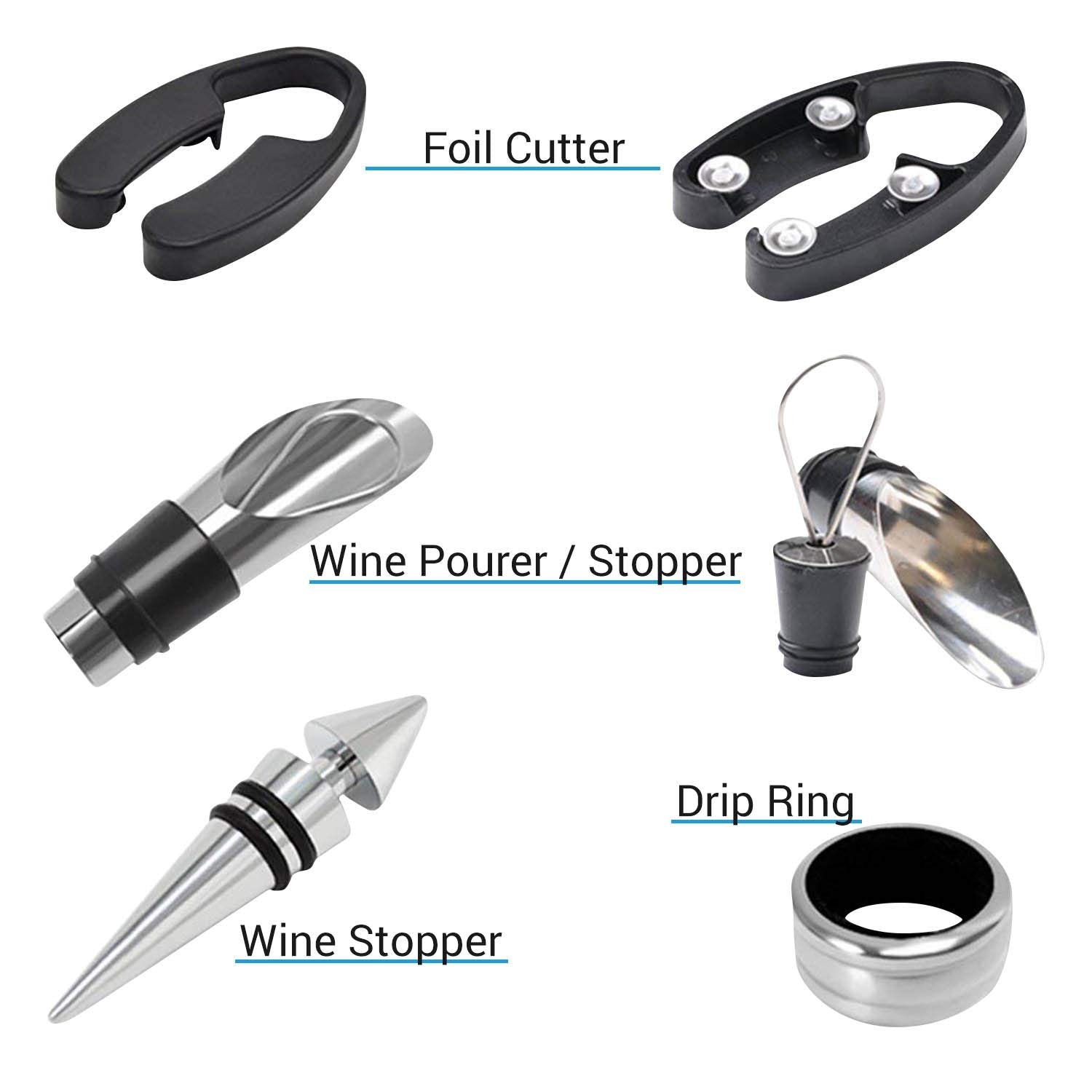 Slitesterk og solid konstruksjon: Tilbehørssettet for vinåpner er laget av matgodkjent rustfritt stål og plast, uten BPA eller harde materialer, noe som sikrer at de er trygge og holdbare nok til daglig bruk over lang tid.