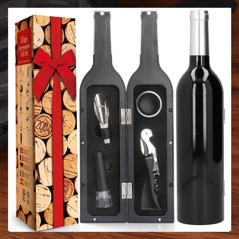 Enkel å organisere og oppbevare: Vingavene våre til vinelskere kommer pakket i en elegant vinflaskeformet etui som fungerer som et dekorativt stykke og gir en enkel måte å holde vintilbehøret organisert og enkelt å bære.
