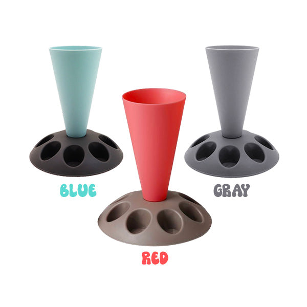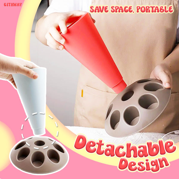 En må-ha bakeverktøyholder med en avtagbar kjegleformet spor for oppbevaring av en sprøytepose og 8 individuelle spor for sprøytespissene dine. Den lar deg holde kakepyntingsverktøyet organisert og alltid lukke mens du baker for praktisk dysebytte og tilgjengelighet. Det hjelper også slik at du enkelt kan overføre glasuren eller annen blanding inn i sprøyteposen uten søl på et blunk. Hva mer? Denne holderen lar deg holde hendene fri for maksimal manøvrerbarhet uten at du trenger å la verktøyene være rotete i bakeområdet. Gir deg mulighet til å opprettholde hygienen da du forhindrer risikoen for at sprøyteposen kommer i klem og dysene ruller av.
