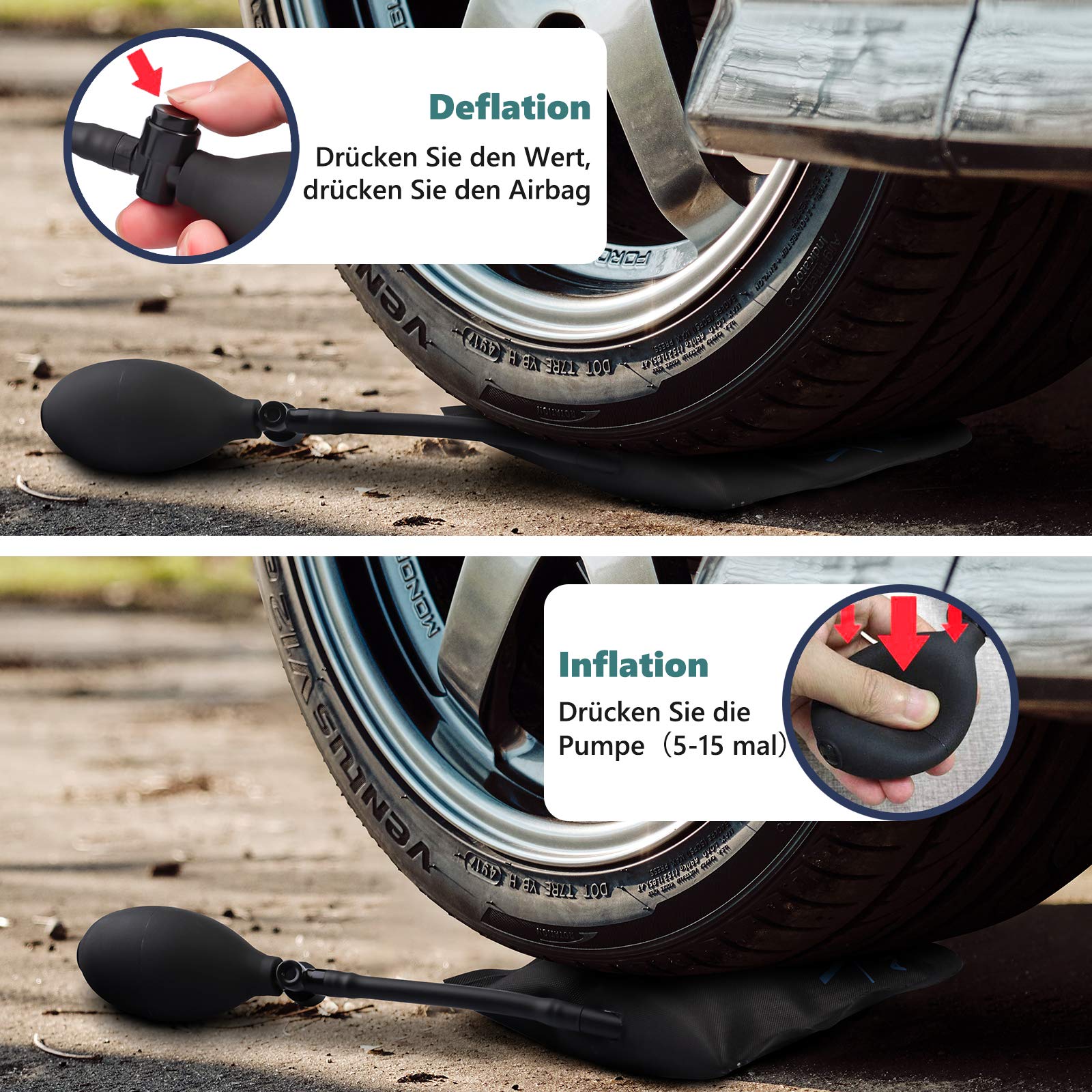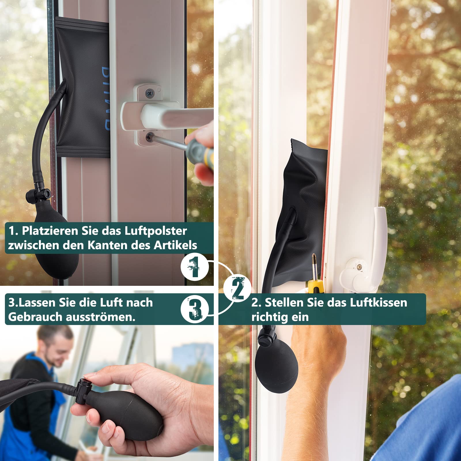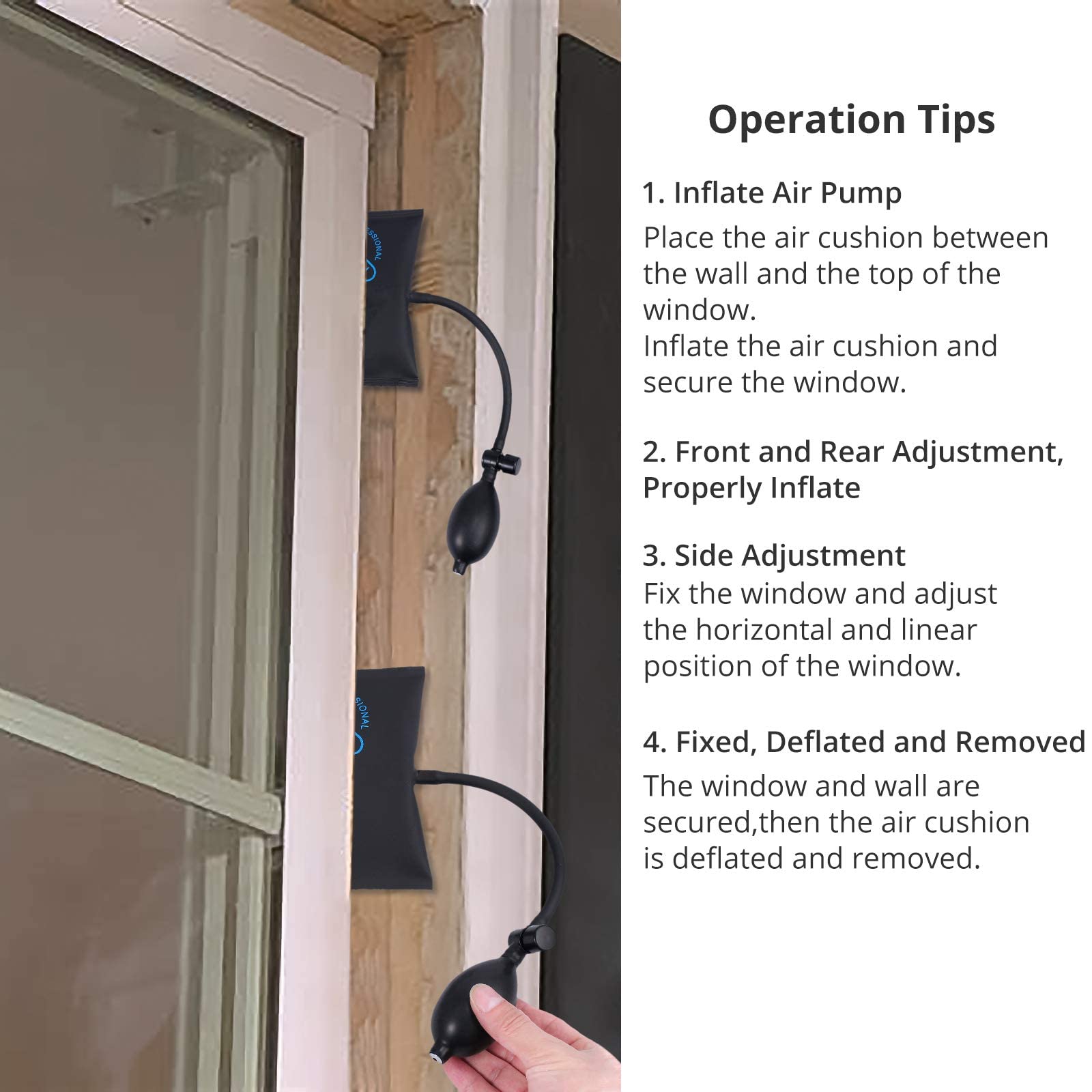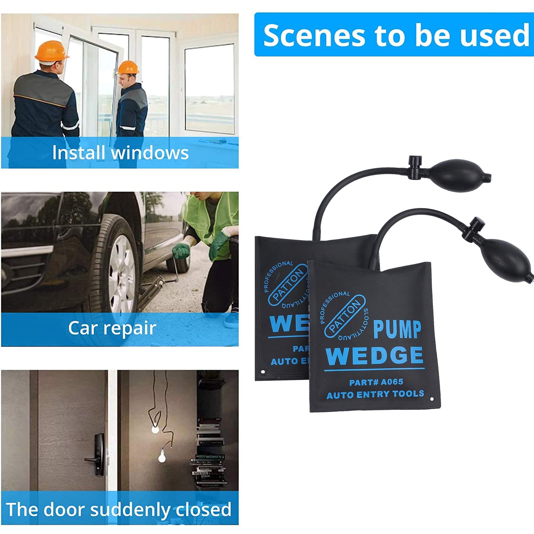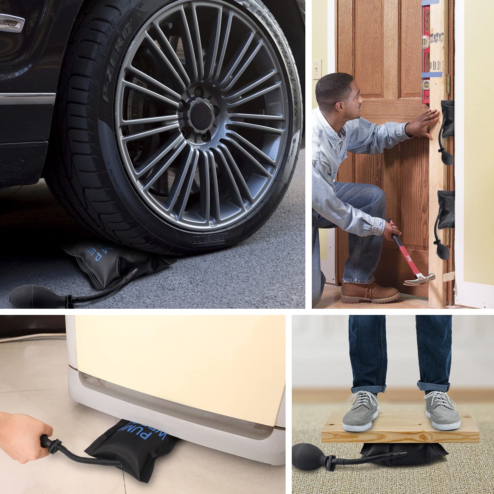 Enkel å bruke: Vår luftkile er designet for enkel bruk. Med en enkel klempumpe og en presis lufteventil kan du løfte og senke til perfekt justering. 3 størrelser for en rekke arbeidsbehov, fra 330 til 551 pund lastekapasitet. MERK: Ikke blås opp for mye for å unngå skade på posen eller ventilen.