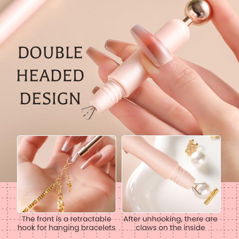 🧲 Dobbel hodeutforming: Den fremre delen er en uttrekkbar krok for å henge armbåndet. Etter at du har løsnet kroken, er det klør på innsiden for å hjelpe deg med å bære øredobber, perler osv.