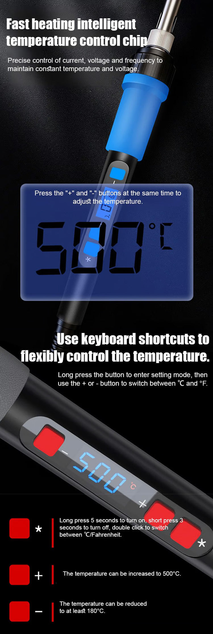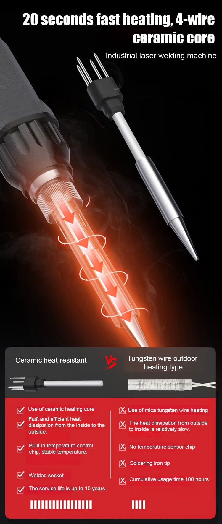 - 1 x Loddebolt med innvendig oppvarming og konstant temperatur