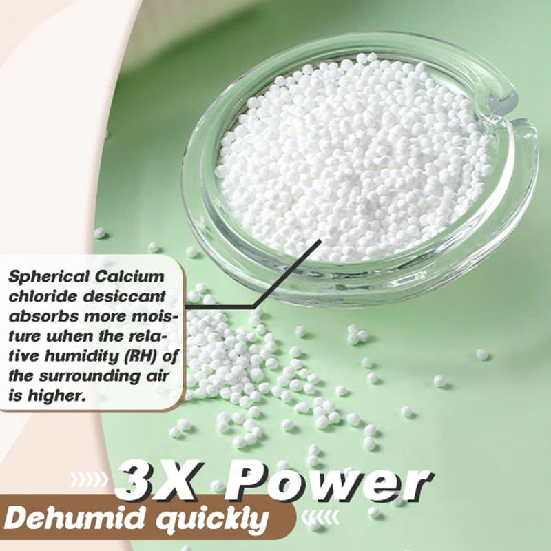 Leveres med en pakke med høyeffektive kalsiumklorid-tørkemiddelpellets, som har evnen til å oppnå en fuktabsorpsjonshastighet på opptil 300 % av sin egen vekt. Kan brukes i rom på opptil 200 kvadratmeter, inkludert skap, kjellere, boder og vaskerom. Også bra for garasjer, tilhengere, biler, bobiler og båtoppbevaring;