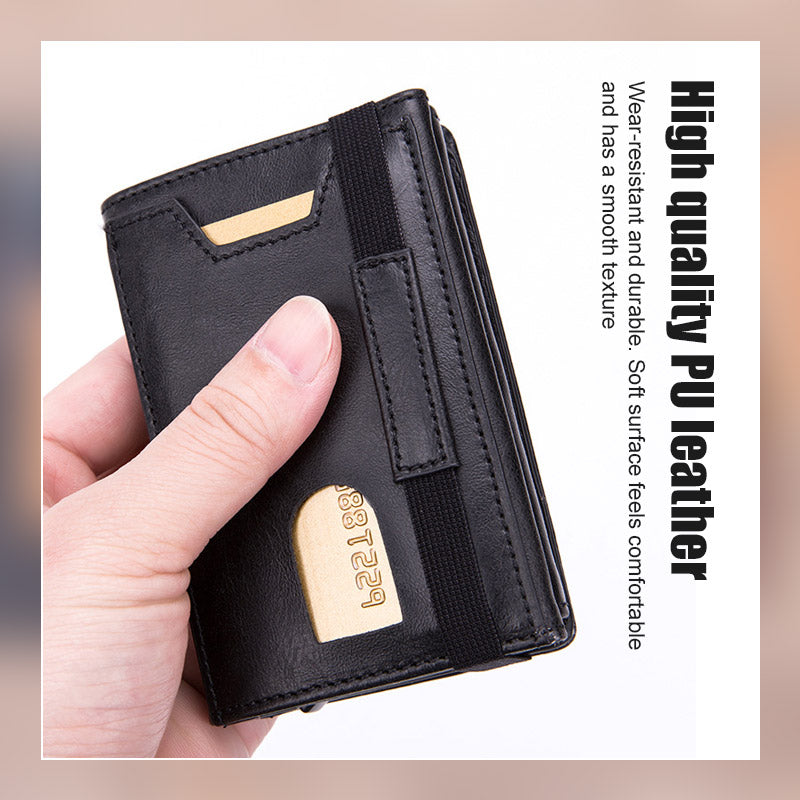 Denne kredittkortboksen er laget av PU-lær av høy kvalitet og er både slitesterk og holdbar. Den myke overflaten føles behagelig i hånden, og den glatte teksturen gjør den enkel å åpne og lukke.