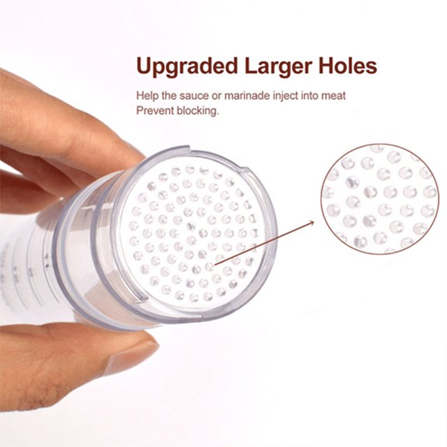 Denne unikt utformede SAUCES ENHANCER har kniver i rustfritt stål som gjennomborer kjøttet for å gjøre det mørere, mens de tre smaksnålene sprøyter inn ønsket marinade.