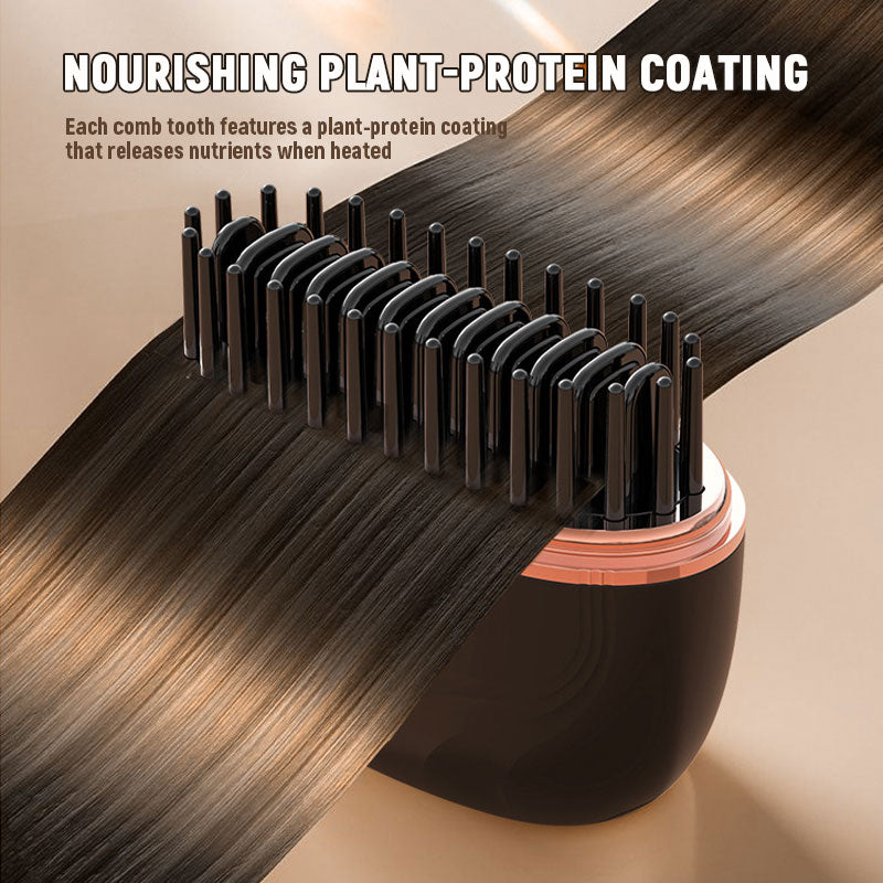 Hver kamtann har et planteproteinbelegg som frigjør næringsstoffer når det varmes opp – noe som reduserer krusete hår, forhindrer skader og gjør håret mykt, skinnende og sunt. 🌱💆♀️