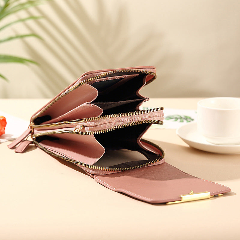 Den lette og stilige 2-i-1-vesken i skinn er designet for et aktivt liv! Du kan bruke den som lommebok eller som skulderveske, siden den leveres med stropper.